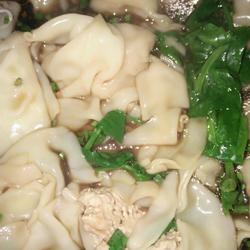 Remove the pot and place it in a bowl.First put some soup base in the bowl, then add an appropriate amount of Sichuan peppercorns, pepper powder, chili powder, vinegar, white soybean oil, lard, pea tips, and stir together with a hand.Then add chopped green onion.Ready to eat.