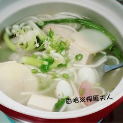 6. After the water boils, put in the vegetables that can withstand cooking (quail eggs, potatoes, flower sausage , mushrooms, cauliflower, tofu)