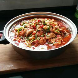 3.Heat oil in a pan, sauté onions, ginger, and garlic until fragrant, add two tablespoons of bean paste and stir-fry until red oil comes out, then pour in the fish head stew soup, add 3 grams of salt, 5 grams of chicken essence, and then add the fish fillets
