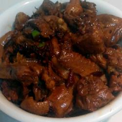 10.Pour in the blanched duck pieces, turn to medium heat and stir-fry quickly, add seafood soy sauce and stir-fry evenly