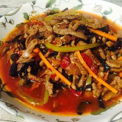 1. Cut the meat into shreds and use cooking wine and raw materials Mix soy sauce, egg white, vegetable oil and starch, then marinate