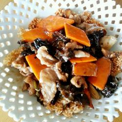 1.Soak fungus and mushrooms, and wash all ingredients.Cut green onions, ginger slices and garlic slices and set aside.