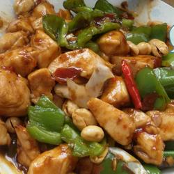 1. Cut chicken breast into small pieces , break the green pepper into pieces, soak the peanuts in warm water and remove the red coating, fry the peanuts first, remove the green peppers from the oil to control the oil, use the base oil to fry the chicken breasts until they are cooked (use cooking wine, salt, water and starch) Marinate for a while).