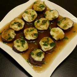 2.Wash the eggplant and cut it into two slices! Don’t cut off in the middle!