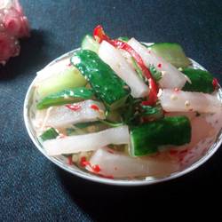 How to make hot and sour radish and cucumber strips with bath kimchi