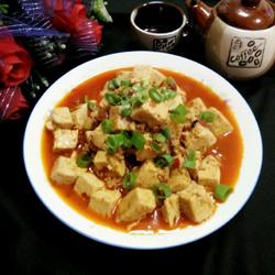 9.Put it on a plate, sprinkle with chopped green onion, and a plate of Mapo Tofu is ready