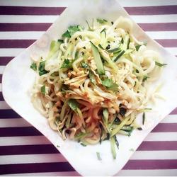 9.Finally add cucumber shreds and coriander Finally, crush the peanuts.Mix well and serve.