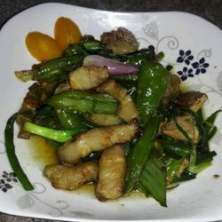 7.Put in the remaining green onion leaves and stir-fry evenly, turn off the heat and cook