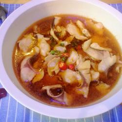 17.Put in the pickled fish fillets, and add in the soup: delicious fresh soy sauce, Chicken essence, sesame oil, pepper oil.Cook until the fish fillets are slightly white, then turn off the heat and simmer for 5-10 minutes.This way the fish fillets will be the most tender.