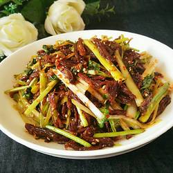 9.Put the chopped green onions Put the shredded shredded beef, coriander segments, and stir-fried shredded beef in a basin