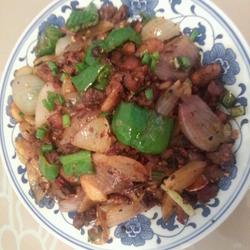 5. Add onions and stir-fry.When they are cooked, add green peppers and stir-fry until browned.Plate and eat.