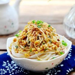 6. Half a bowl of cooked peanuts, 3 tablespoons of spicy oil, 3 tablespoons of vinegar, 2 tbsp salt, 1 tbsp light soy sauce, 1 tsp chicken essence, 2 tbsp sesame paste, 2 tbsp pepper oil, 2 tbsp cooking wine, chopped green onion and garlic.
