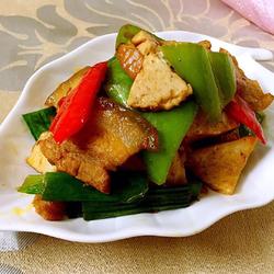 9. After stir-frying for about one minute, add the green and red pepper cubes and sprinkle with a little salt.Sugar, to taste.
