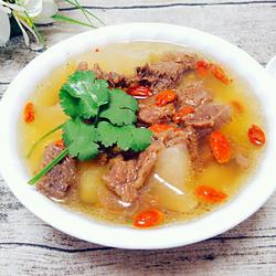 13. Put the cut radish back into the pressure cooker and bring to a boil again, add wolfberry and sprinkle in some pepper powder (pepper must be ground from peppercorns to be fragrant) and turn off the heat.
