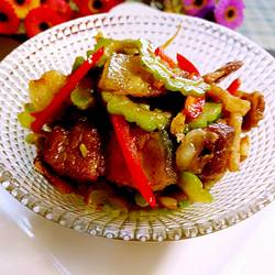 9.Add bitter melon slices and stir-fry evenly