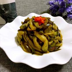 6.When the eggplant shreds are soft, pour in soy sauce and stir-fry.