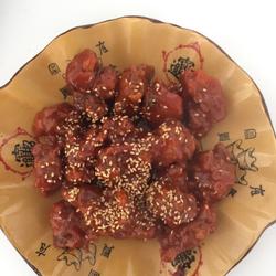 8.Place the white vinegar , sugar, tomato sauce, soy sauce and water starch are mixed into a sauce.Pour it into the pot and heat it until it becomes a paste.Pour a little oil on it, put the fried ribs into the pot, stir-fry evenly and then take it out of the pot.Sprinkle on Sesame seeds are ready to eat