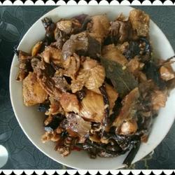 5. Put the oil in the pan and fry the onions, ginger, peppercorns and star anise Fry the pepper until fragrant, add sugar, put the chicken into the pot and stir-fry, pour cooking wine, soy sauce, light soy sauce, after frying, add the filtered water used to blanch the chicken, add cinnamon and bay leaves, add salt and pour in the high-voltage electric Stew the chicken in the rice cooker for twenty minutes.