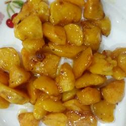 4. The white sugar part is normal, add a little less base oil, and the sugar will turn light yellow over low heat.Put the sweet potatoes into the pot, turn both sides and it's ready to serve.了