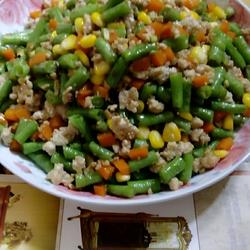 3.Add carrots, beans and corn and stir-fry