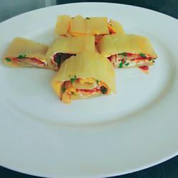 1. Grilled cold noodles bought in the supermarket, with sauce and baking ingredients inside.