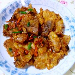 5. Put a little oil in the pot, add the onion, ginger and carrot shreds and stir-fry for a few times , add sugar, vinegar and appropriate amount of water and stir-fry evenly.