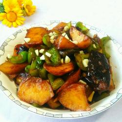 10. Add green peppers and potatoes and stir-fry, add salt and mix well.