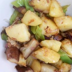 2. Cut eggplant into cubes (Originally I wanted to cut it into strips...but I couldn't help it...I suggested peeling it, but who told me to cut it before I remembered (>﹏