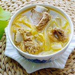 2. Blanch the ribs in cold water Water removes blood foam.After the water boils, turn off the heat and wash away the blood foam on the surface of the ribs.