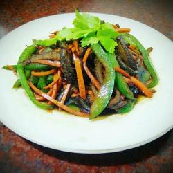 14.Add green pepper and carrot shreds.
