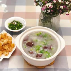 9. Use a spoon to stir the porridge, mainly to stir the lettuce into the In porridge.Just cook for a minute or two after serving, because the shredded lettuce will cook very quickly.