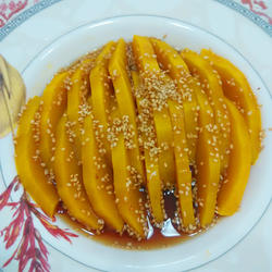 5. Let the steamed pumpkin cool, pour the honey juice on the pumpkin, and finally sprinkle it with Just cooked sesame seeds.
