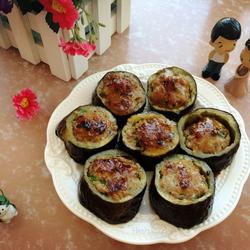 6.Put the prepared meat filling into the eggplant segments with a spoon and smooth it out