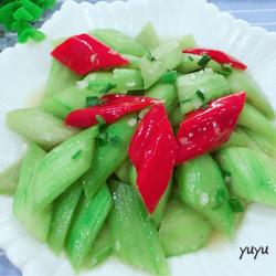 14.Add MSG and oiled red pepper rhombus slices, stir-fry evenly and serve