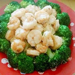 8. Arrange the broccoli on the plate with its head facing the outside and place the shrimps in the middle to symbolize the beautiful flower of wealth and is it ready?