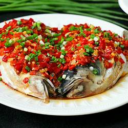 12. Boil the water in the pot, add the fish head and steam for eight minutes.