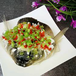 6. Take out the steamed fish, sprinkle with chopped green onion, pour a spoonful of soy sauce, heat the oil in a pot and pour it on the chopped green onion, the onion will smell It came out