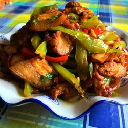 6.Pour it out without washing the pot.Saute the chopped green and red peppers until fragrant