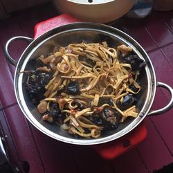 4.Add the washed Qianzhang blanching water into the fried tea tree mushrooms