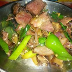 Bacon, 300 grams ( 1 red pepper, three green peppers ) | Garlic sprouts, 2 stalks (Celery, 1 stalk) |