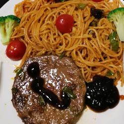 Steak ( 1 piece ) | Pasta ( Moderate amount ) |