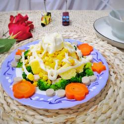 Corn kernels ( 80g ) | Thomas cheese fish sausage ( 2 pieces ) | Whole wheat toast ( 1 piece ) | Eggs ( 1 ) |