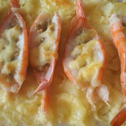 5. Spread an appropriate amount of cheese on the mashed potatoes and shrimp, and put it in the oven Bake at 200 degrees for fifteen minutes.