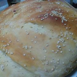 3. Spread the batter and sprinkle with sesame seeds.(The batter will make the outside crispy and the inside soft.) Preheat the oven for 10 minutes, put in the middle and lower racks, (bake at 130 degrees for 50 minutes.The thermometer in my oven shows 110 degrees.The temperature of each oven is different.Pay attention to the coloring.Cover with tin foil,