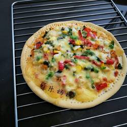 13. Preheat the oven to 180 degrees for ten minutes and bake the pizza for about 20 minutes.The surface is golden.The key to good cheese drawing is not to dry out the cheese.But because I prefer to eat drier food, the baked ones are drier, so the drawing is not good.If you like cheese, you can add more.