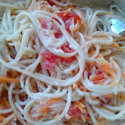 2.Cut the tomatoes into cubes and cook with the pasta.Together