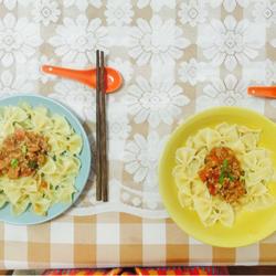 6. Lay out the pasta, pour it with meat sauce, and the delicious butterfly meat sauce pasta is ready OK! Isn’t it beautiful