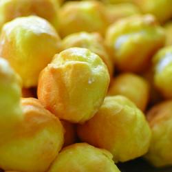 8. Line a baking sheet with oil paper and squeeze puffs of similar size