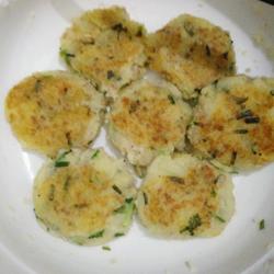 3.Add the fried minced meat to the mashed potatoes, then add coriander, chives, appropriate amount of salt, stir together evenly, then shape into cakes with your hands and fry in a non-stick pan until both sides are golden and slightly pancake-like.Best, more convenient!