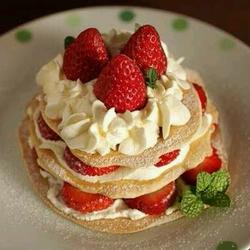 3. Whip 200 grams of whipped cream and add 20---40 grams of powdered sugar (according to your preference).Let the fried pancakes cool down before touching the butter.